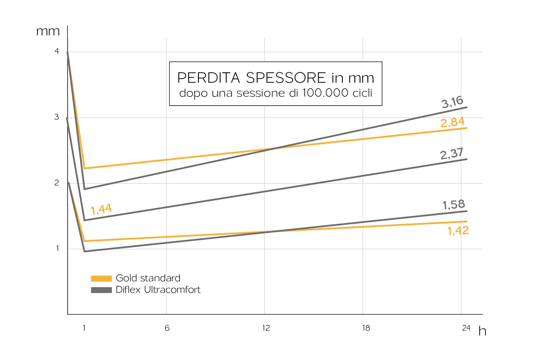 Il Diflex Ultracomfort contrasta lo svilupparsi e la moltiplicazione dei batteri. Questa caratteristica è fondamentale al fine di proteggere il piede di pazienti reumatici e/o a rischio che devono evitare di appoggiare il piede su un materiale ove i batteri proliferano. Il materiale viene presentato in diversi spessori e colori. La finitura liscia viene volontariamente adottata al fine di evitare ogni possibile proliferazione di batteri tra le micro-forature. La nostra Mission è chiara: nessun compromesso sulla salute