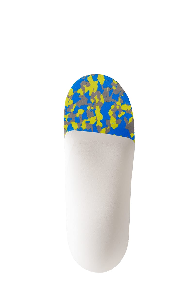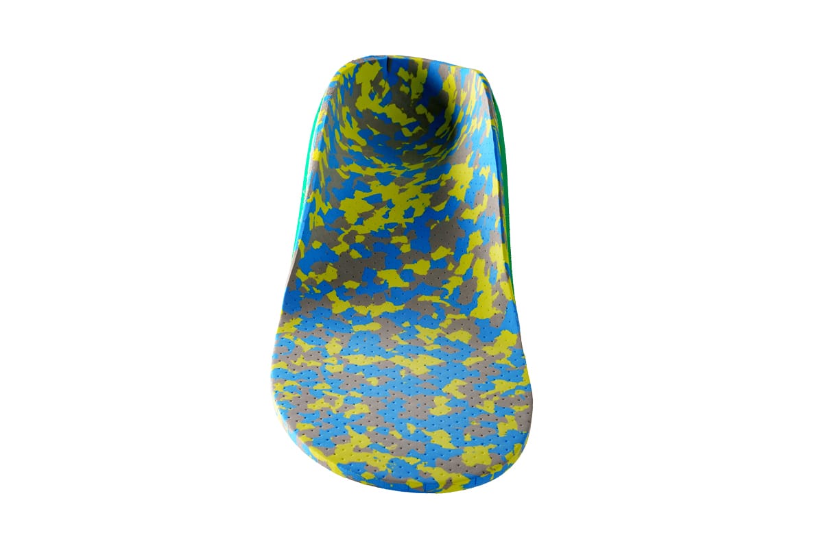 Un plantare avvolgente semilavorato con scocca portante in EVA per piede pronato di 3° grado, per contenere il retropiede in asse e sostenere la volta plantare. Peso standard. Nelle misure da bambino prevede base da 3mm e scocca shore A 50; nelle misure da adolescente prevede base da 5mm e scocca shore A 60.