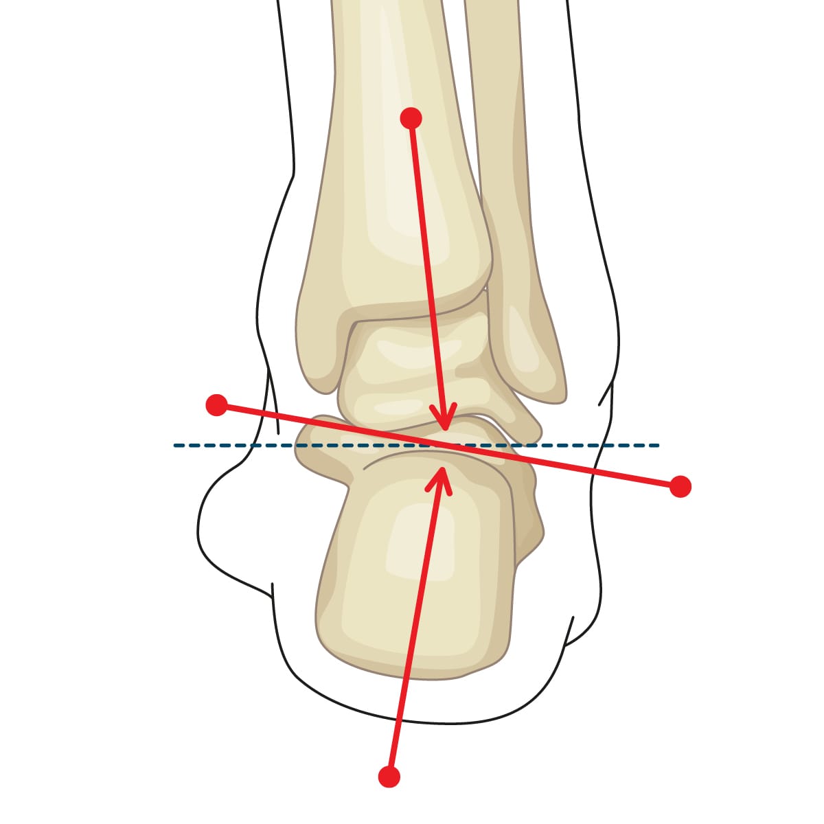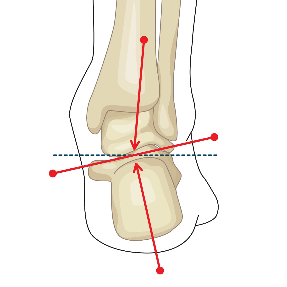 L’asse del piede è ruotato verso l’esterno.