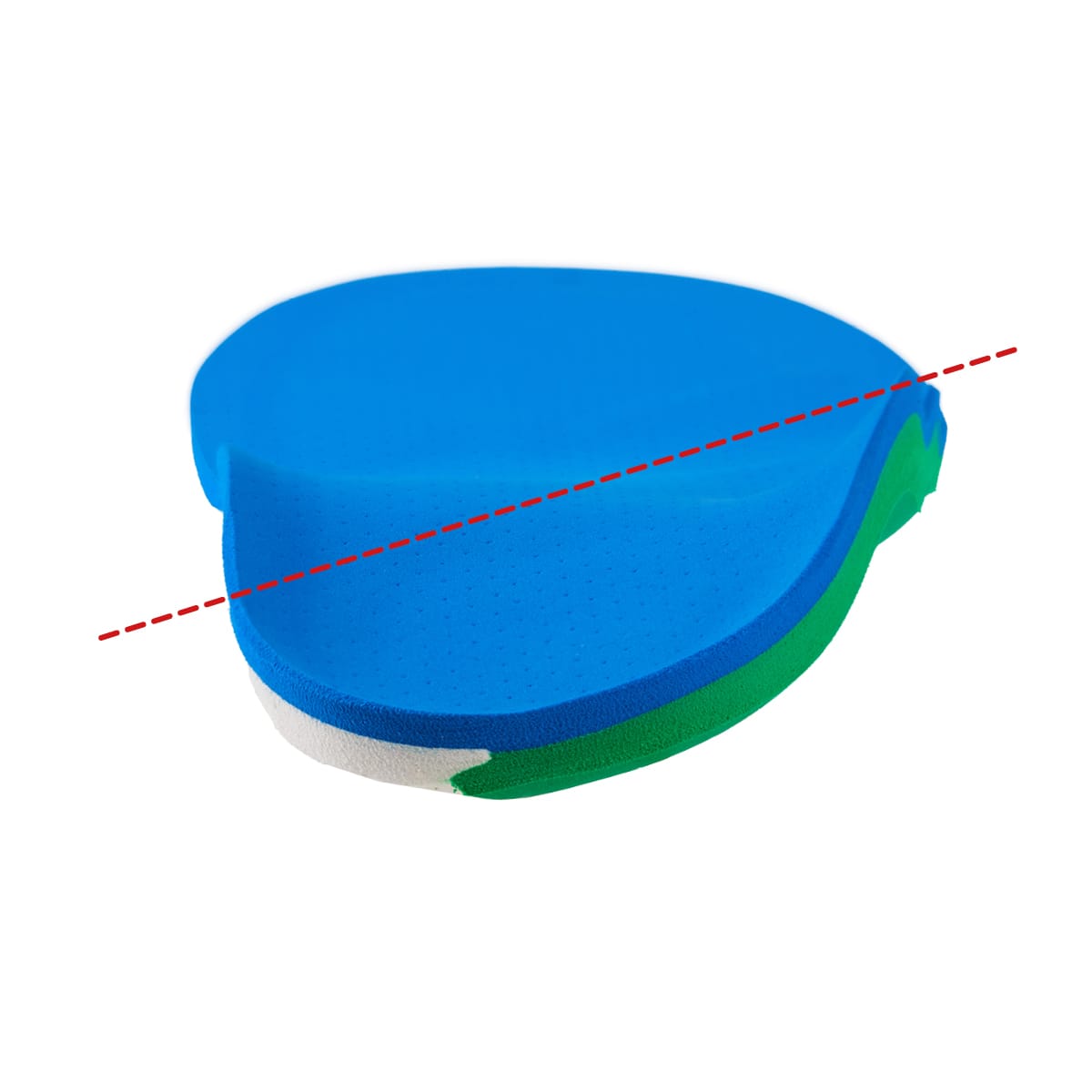 Il materiale esterno, di densità minore, accomoda e rimette in asse il piede.